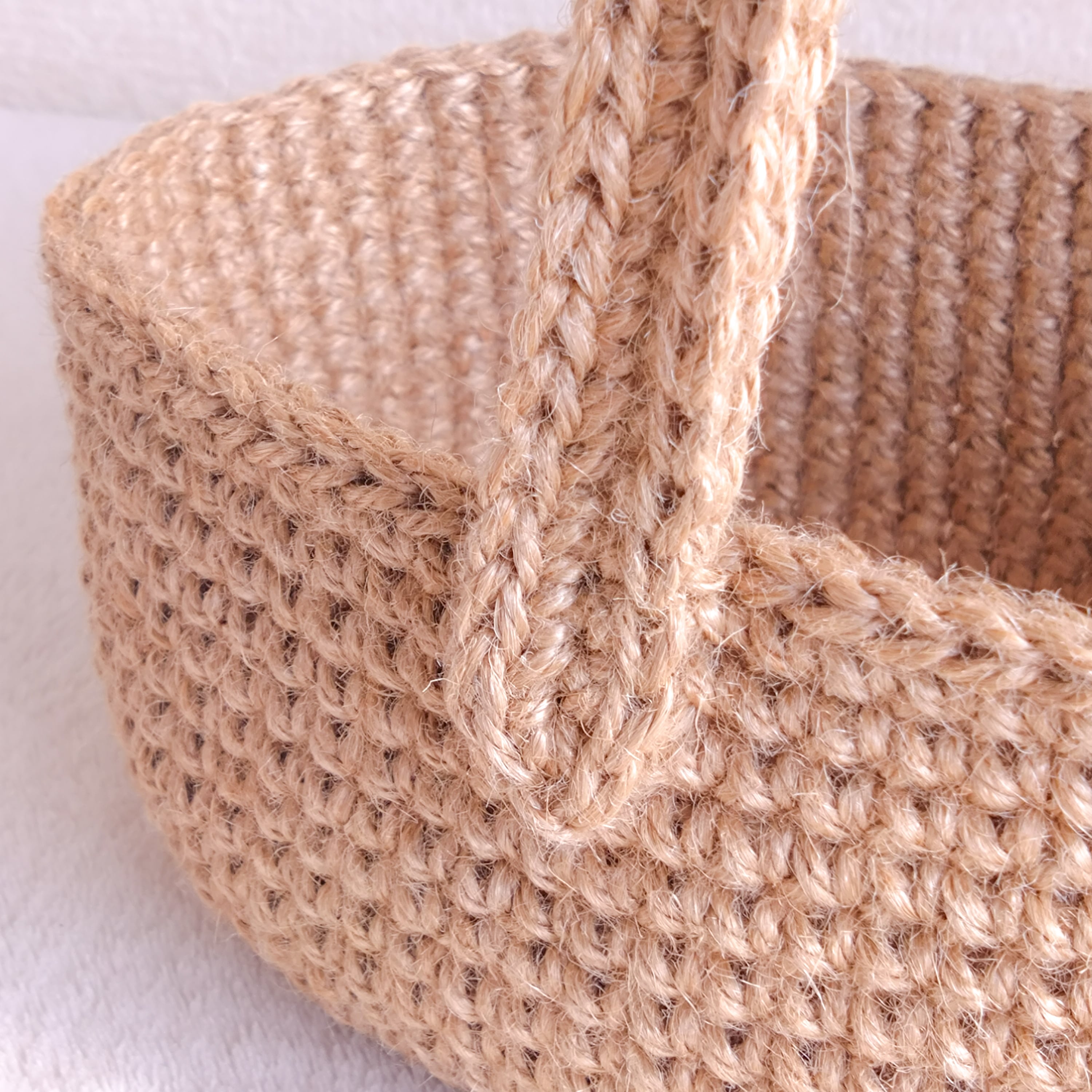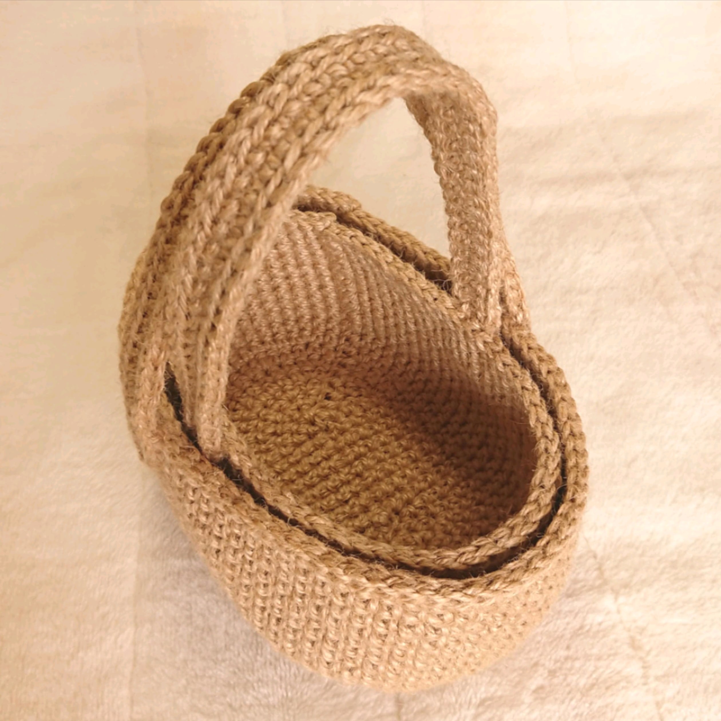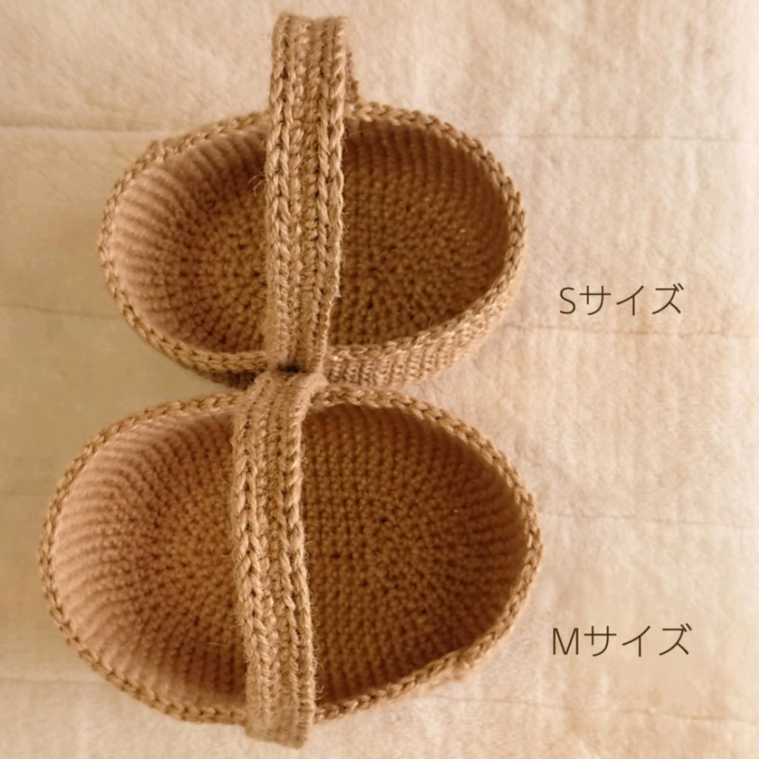 自然素材100%の麻紐で編んだ、手編みのバスケット型のかごです。