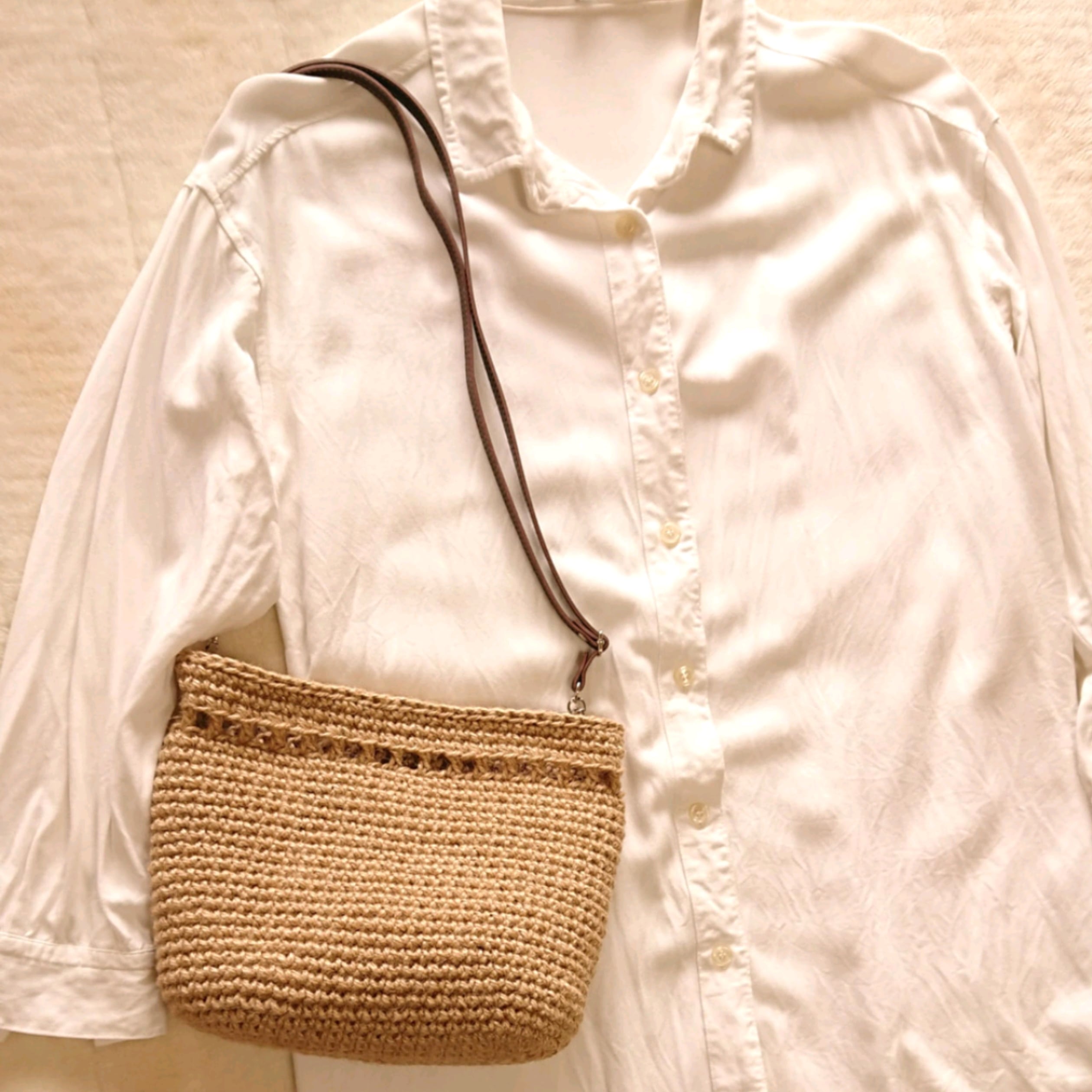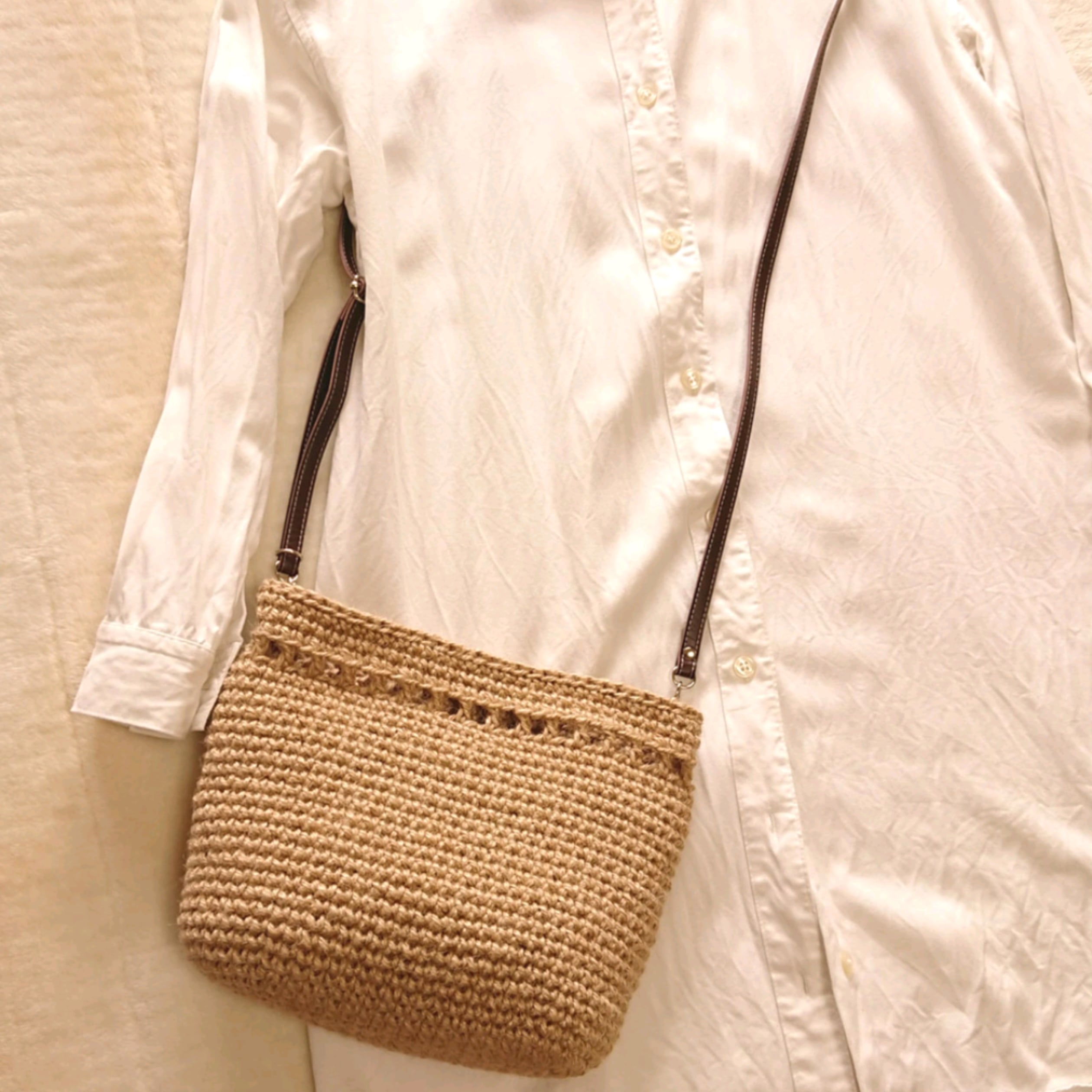 シンプルラインの麻紐ショルダーバッグ かごバッグ 斜め掛けバッグ 肩掛け サコッシュ ポシェット かぎ針編み 手編み
